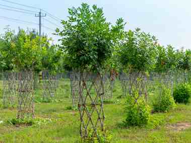現(xiàn)存93萬株 胸徑 8-24cm 分支點2.2-2.8m 涵蓋叢生白蠟、對節(jié)白蠟、冬紅白蠟、金葉白蠟、中國黃蠟等“新、優(yōu)、特”系列產(chǎn)品 冠形分為以引導(dǎo)枝為主的原生冠型、精修骨架枝為主的截冠發(fā)帽型和精品叢生型三種